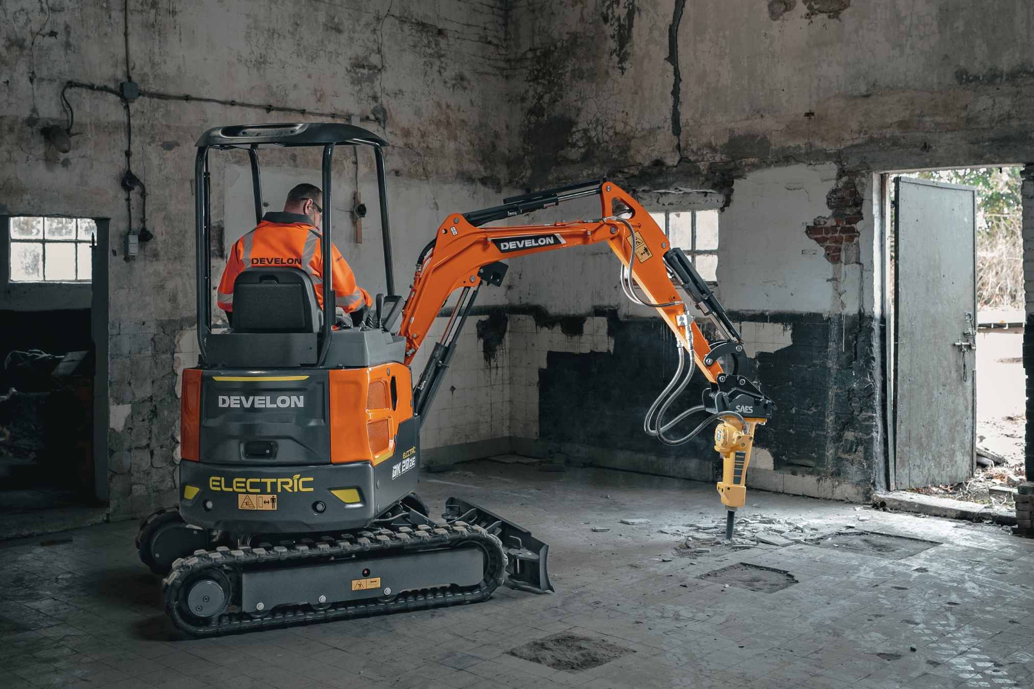 to pierwsza w pełni elektryczna maszyna w gamie. Wyposażona w akumulator o mocy 20,4 kW, z możliwością dwóch opcji ładowania przy standardowym napięciu 220V oraz szybkiego ładowania przy napięciu 380V. Zerowa emisja dwutlenku węgla i cząstek stałych, sprawia że urządzenie jest przyjazne dla środowiska, a operator zyskuje wolne od hałasu, komfortowe warunki pracy.
